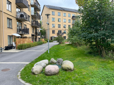 I kvarteret Karneolen i Solberga i södra Stockholm, som stod klart för inflyttning 2022, kom det att handla om omhändertagande av dagvatten. På platsen fanns tidigare en naturmark med stora träd och annan uppvuxen vegetation som, förutom att den bidrog till att bevara biologisk mångfald, medverkade till att ta hand om dagvatten. Den tekniska lösningen blev krossmagasin under huskropparna och de hårdgjorda ytorna. Takvatten sprids via stuprör och renas i regnbäddar.